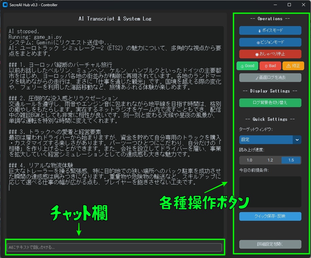This tool can be operated with Stream Deck, and can be launched with a single touch to ask the AI questions.